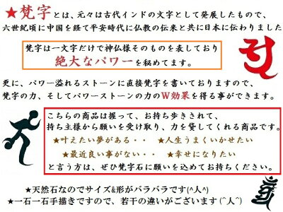 こちらの商品は、握ってお持ち歩きされて、パワーストーンと梵字自体が願いを受け取り、力を貸して願いを叶えてくれる商品です。